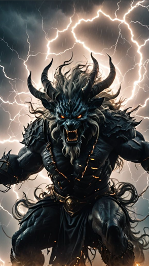 バビロニア神話において、ティアマトが生み出した11の怪物の一体で、「激しい嵐」または「荒れ狂う暴風」を意味します。その姿は定まっていませんが、天候の破壊力を体現する巨大な魔物として神々を襲いました。